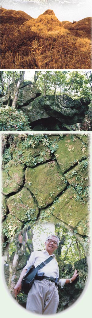 北台灣古文明探索 從凱達格蘭族與七星山金字塔談起 真逸 遠眺七星山巨石文明---原型金字塔(上)台北七星山人工雕刻的龜形石,眼睛和嘴巴栩栩如生,龜申也有雕刻精細的六角形龜甲圖形(中)七星山上金字塔遺址附近人工雕刻的龜背圖(下)攝影/蘇珊 八月卅日英國考古學家葛瑞姆‧漢卡克(Graham Hancock)與日本考古學家木村政昭帶領一組工作人員,在台灣凱達格蘭文化工作者林勝義先生的引導下,繼澎湖虎井沈城的探勘後,到七星山上做古文明探索。一萬二千年前的恐龍石雕帶足了衛星定位儀等高科技裝備的一行人,自小油坑登山步道一路蜿蜒拾級而上,轉入一條小徑後,來到了一座「祭獸壇」前。壇的堆砌方式顯示出人造痕跡,底座足足有一人高,台上鑿有三個窟隆,看似插放火把的地方,再往上瞧,兩側堆立起對稱的數塊巨石,造型像猛獸,林勝義先生說:那是「恐龍」造型,兩個恐龍頭對碰,脖子、前肢之雕工明顯,在轉折處,不知凱達格蘭先民係以何工具將其強力切平,也不知他們是在何種情況下曾目睹恐龍。據林先生稱:以該石塊切工研判,此壇之年代應在一萬兩千年前。想想,當時台灣北部真有恐龍嗎?真有史前人類文明存在嗎?不禁令人陷入對古文明的遐思當中!繞過「祭獸壇」,背面出現了一片視野較寬廣的小廣場,為一「祭天壇」,壇前明顯地在地上挖鑿了一個月牙形的凹地,據說是水池。說也奇怪,那凹地長不出草來,只有青苔。水池與壇之間的空地,若在上面彈跳,可隱然感覺到地底為空心有迴響的奇特地形。壇前左側樹林內,有一塊人工雕鑿的龜形巨石,栩栩如生。龜的頭部睜眼張口,眼部線條更形靈活,教人看了心中一凜。轉到背後,龜背上有明顯的殼紋,在林先生的解說下,理解到殼紋其實是將七星山附近的水文予以記載。凸出部分是山或平地,溝紋處就是水行路線,凱達格蘭族傳說:人類若更改水文、地形,不按照「上天」最初的安排,勢將帶來災難。頓時讓在場所有人聯想到,從古到今,凡人類試圖更改河道,終將付出相當的代價,不禁令人覺得「古人畏天」的信仰才是對的。凱達格蘭族與外星文明漢卡克看著祭壇,沈思一會兒,脫口問道:「凱達格蘭族對這塊古文明遺跡的傳說是什麼?」林勝義先生答稱:「我們的母語稱祖先為帽子,來自叫「SANASAI」的南方綠色大地,祖先降臨的地方即現今七星山金字塔遺址處,母語叫降落」。傳說中祖先是坐著發光炫目的「帽子」來的,這讓我想起「帽子」的形狀,會不會就是現代人口中的「UFO」(飛碟),還是其他高級生命呢?上述傳說似乎在敘述一件發生在上古時代「外來文化」登陸北台灣的情景。試想數萬年前的某一天,高科技的飛行器突然自南方天空出現,從天而降,光芒四射,降落時還在地面上拉出一條「路」來。這突如其來的「外來文化」帶給凱達格蘭族莫大的知識技能文明,以致許多考古學家、考古語言學家均認為「台灣」文明開發得極早。迄至十六、十七世紀,台灣仍是唐山人羨慕的國度,(當時男性唐山人均來台任長工,甚至入贅),是廣大南島語族(東起東非馬達加斯加,西至南美復活節島)的「原鄉」。金字塔與地底通道「金字塔!」不知誰好大的叫聲,把我拉回現場,就在「祭天壇」前百公尺左右,一座長滿荒草的角錐土坵矗立眼前。土石裸露處,顯現出平整切口與人工堆砌的痕跡,層層累累構造出一座中空的「原型金字塔」。金字塔坐北朝南、三面環山,南向台北盆地,塔頂對向正前方的「方位石」延伸出的軸線,恰好穿過紗帽山山頂凹陷處,經測定與「經線」相差無幾。傳說在萬餘年前,這條軸線正對準北極星,林勝義先生在旁邊補充說明:「附近有反經石(Reverse Compass Stone),整塊石頭具有磁性,上面還有十字形白色紋路,可使指南針轉反向。」這些人工土石的方位擺置,似乎在形成一個「場」,我胡猜著:「這會是一個導航設施嗎?」跟「印加文化」遺留在秘魯那茲卡(Nazca)高原上的幾何圖形,是否有異曲同工之處?突然,某個專家在金字塔的中空地洞洞口點燃一根香菸,就看那白色的輕煙逕往洞內飄去,專家說:「這洞有出口,空氣是流通的。」林勝義先生站在旁邊笑著說:「據說可通往中山樓後山的那個山洞」。這些複雜的地下網路與數千年後在埃及出現的「豪華金字塔」有著相同的構思--內部底下構築地下渠道,究係「交通」所需,抑或防範下一次大洪水來臨時避難之用?對於古文明遺跡的發現與完善保存,有待政府重視,移撥人力、物力,做深入的維護及探索。如此,方能揭開「人類生命」和「宇宙」的關聯所在。