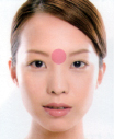 印堂有斑或疤時,用遮瑕乳適度遮蓋。加強印堂的亮度,改善命宮的氣色。最佳的印堂氣色是明亮的黃色,若印堂轉為紅潤時,在事業上會有鴻運;當印堂微微泛青時,表示有煩惱心事,可用橘色飾底乳修飾;印堂出現紅中帶黑的氣色時,恐怕近期會破財,可用綠色飾底乳(不可過量,以免印堂泛青);印堂黯沉時,使用磁白色的飾底乳。◇