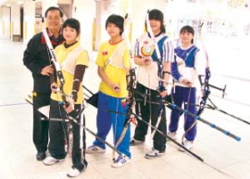射箭選手合影,呂仁和校長參與其中。
