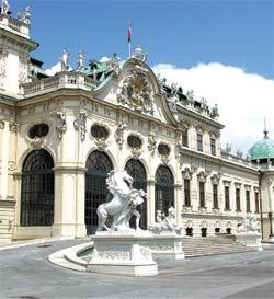 位於普林茲.歐伊建大道(Prinz Eugen-Str) 旁平緩斜丘上的離宮──貝維帝爾宮(Obere Belvedere),是維也納最著名的巴洛克宮殿之一。和霍夫堡宮殿不同的是,興建的主人並非是皇帝,而是一名軍事元帥。他是1683年擊退土耳其軍的統帥,薩福伊的歐根親王(Prinz Eugen von Savoyen)。
