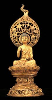 黃色原為佛家最常用之色,佛像以鎏金、漆金為貴。此圖為國立歷史博物館展出的金銅佛像。(國立歷史博物館提供)