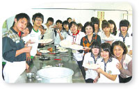 興南國中自71年起,首創開辦營養午餐,成為縣內國中自辦午餐績優學校,這學期每週一天還供應豆漿,午餐執秘曾凱宏老師帶領技藝專班同學,加入磨豆漿的行列,學以致用。