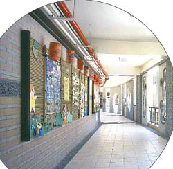 令人流連徘徊,頗具藝術風貌的教室迴廊。