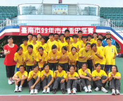 早晨,天才清亮起來,金城國中體育班的學生已經在操場晨練,他們身著黃色運動上衣,藍色褲子,在陽光下格外活潑耀眼,每個選手儼然就是「健康」形象的最佳代言人。校園另一旁,小葉欖仁綠樹成蔭,矗立在乾淨、大氣的石磚廣場旁,顯得清朗而幽靜,一動一靜相互映襯,進入金城校園,自然而然地讓人元氣十足。