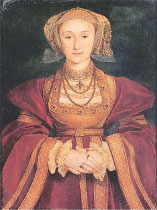 畫家小荷爾拜因所畫的安妮。亨利八世認為此畫美化了安妮的長相。(維基百科)