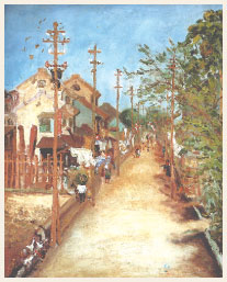《嘉義街外》 陳澄波 1927 油彩 64 x 53cm 入選帝展之作,這張油畫描寫的正是陳澄波的嘉義住所隔壁街。(蘇建明提供)