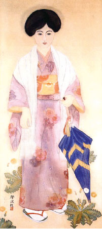 《外出》 陳澄波1926 絹‧膠彩120×54 cm 此畫是陳澄波留學日本時期,繪製的傳統美人畫。(維基百科)