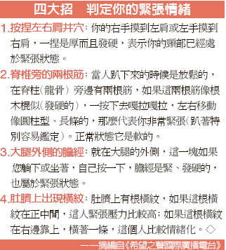 肝膽在中醫認為與壓力緊張有關。我們可以經由四個指標驗證,您是不是一個很緊張的人。