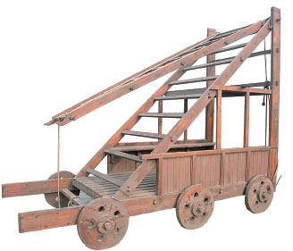 春秋時代,公輸般為楚王製造的一種攻城的工具,比樓車還要高,看起來簡直是高得可以碰到雲端似的,所以叫做「雲梯」。諸葛亮所製的「木牛流馬」,使用在崎嶇的棧道上運送軍糧打勝仗,在時間上來說,又其次。