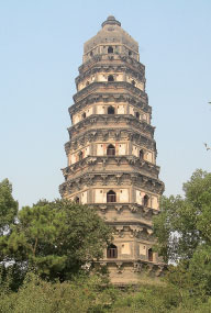 雲岩寺塔,也叫虎丘塔,位於蘇州西北部的虎丘山頂,由於塔身傾斜,又被稱之為「中國的比薩斜塔」。