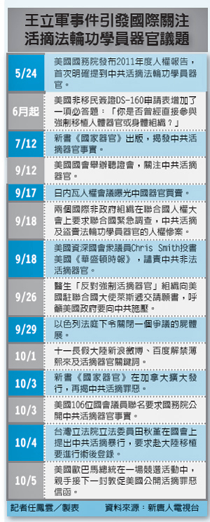 今年在王立軍、薄熙來等活摘案情關鍵人士浮出檯面後,國際再次大力追究活摘證據與責任。台灣法政界、醫界也打破沉默,要求台灣政府實際管理,藉由透明化與可追溯機制,突破中國移植黑箱作業,停止中共活摘罪惡。