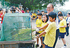 ↑林騰蛟與孩子們一同體驗農趣。(攝影/宋順澈)