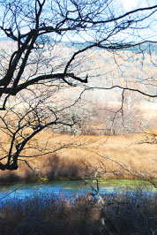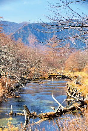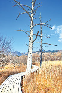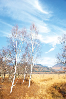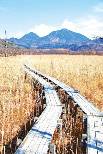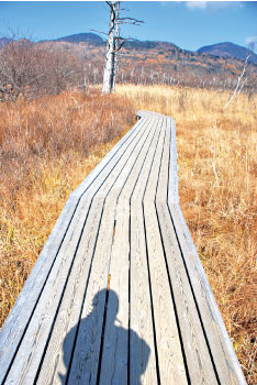 日光國家公園的「戰場之原」是我看過最美的枯景,戰場之原標高1,400公尺,是日光國家公園中最精采的一環。它的名稱由來是神話裡的男體山化身為大蛇,與群馬的赤城山所化成的百足蜈蚣,在此搶奪地盤、戰鬥。兩側草原遼闊,處處都可看到枯木豎立其中,這裡昔日是座大湖泊,在遭受日積月累的泥沙淤積後,漸漸形成現在的溼原高原地貌,秋冬時分黃草枯褐遍野,視野一望無際,流露出一股台灣罕見的蒼茫大地風光。