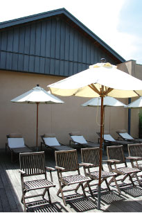 民宿是由兩棟建築物組成,中間有個文藝復興風格的小小迴廊,後面則是一叢小小的花園,兩棟房子外牆爬滿了蔓藤,迴廊上擺著兩張單腳的白色小方桌,桌下被太郎、次郎、優子這幾頭家貓盤踞著。圓桌過去的一側有個小小的露天(浴池),如果你不在乎被這些家貓爬上風呂窗台邊,面對著你行注視禮的話,只是,千萬別在貓的面前洗澡或裸露身體,不然牠們的眼珠會露出鄙視一切的高傲神情呢!