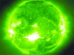 罕見太陽磁爆 科學家高度關切(7版) 吳明 利用遠紫外線拍攝的太陽照片,可以清楚的看見磁爆的情況。(NASA提供) 太陽活動在三年前達到高峰,因此今年太陽的活動應該是最緩和的狀態。但是科學家卻在十月底發現,今年是太陽一千年來最活躍的時候……10月底,太陽黑子連續爆發,產生的太陽風暴襲擊了地球。天文學家和新聞媒體對這一事件皆高度關注,一方面是由於太陽風暴對地球,特別是無線通訊造成的影響;另一方面則是因為這次罕見的太陽黑子爆發,堪稱是一場天文奇觀。磁爆直衝地球太陽觀測站的科學家布列克(Paal Brekke)表示,美國大氣海洋管理局的分類標準為一級最弱、五級最強。10月28日和30日的兩次磁爆屬於最強的五級。另外,爆發的方向是直衝地球的,哈佛大學的天文學家科爾(John Kohl)說:「就像地球直視著(太空中)瞄準我們的巨大槍口……接著那槍口對著我們開了兩槍。」根據文獻記載,最嚴重的一次磁爆發生在2000年4月,不過那次太陽磁爆產生的氣體與落塵,並未直接襲向地球。天文學家指出,這次太陽磁爆過程中,有將近100億噸物質被拋向地球。通訊嚴重干擾受太陽耀斑爆發的影響,日本通訊衛星「KODAMA」一度通訊中斷。10月30日襲擊地球的太陽磁爆引發的地磁爆,導致瑞典南部城市馬爾默停電一小時,影響該市約兩萬個家庭。美國大氣海洋管理局表示,由於事先警告,北美地區已將電力輸出調整到保護級,北美地區未出現大問題,但是美國北部和加拿大的電力系統仍發生不穩定現象。不尋常的太陽活動太陽的活動週期為11年,太陽高峰就是太陽最活躍的時刻。這次週期的太陽高峰已經過去了3年,2003年太陽活動應該處於最低狀態。NOAA的康波斯說,「這就像在非龍捲風季節刮起一場巨大的龍捲風。」Kohl稱這場太陽磁爆「前所未有」:在這樣的時間,兩次大規模爆發,一個緊接著前一個,而且正對著地球。他說,「作為一名太陽物理學家,在我的整個職業生涯中從來沒有見過像這樣的(現象)。發生這樣的(磁爆)機率太小了,從統計角度講是反常的。據悉,11年一輪的太陽週期是19世紀發現的,後來人們發現磁爆與日冕噴發也有類似的循環週期性。另外,據新科學家雜誌11月的報導,芬蘭和德國科學家最近提出的太陽活動模型顯示,目前的太陽活動是一千年來最活躍的。