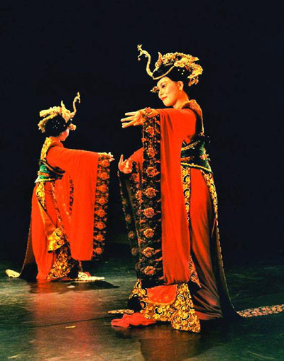 此曲只應天上有 和諧、大度的唐樂舞(8版) 陳怡錦 【楔子】「此曲只應天上有,人間難得幾回聞。」唐朝文化的燦爛,今人只能透過唐詩與壁畫遙想一二。有幸台灣舞蹈界耆老劉鳳學,自一九六五年開始,重建失傳以久的唐朝樂舞,透過她的尋唐之旅,我們得以突破時空距離,感受盛唐的藝術光芒。西元四世紀,佛教及回教文化的樂舞傳入中國之後,與原有的中原文化相互融合,在唐朝形成的一種音樂融合舞蹈的藝術,稱為「唐樂舞」。唐樂舞分為大曲、中曲及小曲,其中大曲是在宮廷演出的樂舞,用以歌頌皇帝,以〈序〉、〈破〉、〈急〉三個樂章為樂舞結構,表演時間約兩個小時,規模等同於今天的交響樂。在當時已擁有上萬名的樂舞工作者,還有教坊及演出機構,可見大曲樂舞在當時的流行。可惜在安史之亂以後,這些樂舞逐漸流失,所幸當時的日本留學生前來中國學習,唐代樂舞才得以保存傳世。唐代大曲原本有四十六首,但卻在中國失傳,後來經由台灣舞蹈家劉鳳學自一九六五年開始,在大陸敦煌、日、韓、歐洲等地,將舞曲研究及重建,成功地保存五首大曲,分別是《蘭陵王》、《皇帝破陣樂》、《春音囀》、《蘇合香》、《團亂旋》,後四首日前已在國家劇院演出,其中還演出一段小曲《胡飲酒》。《皇帝破陣樂》 又名《秦王破陣樂》,是唐太宗當秦王時,於西元六二○年大敗劉武周,士兵們在獲勝歡呼時所展現的舞蹈,直至唐太宗登基時,首次在宮廷內表演。貞觀七年時,唐太宗親制舞圖,並由魏徵等人改制歌詞,自此之後,每逢大型慶典時必演出,並曾用於祭祀。此舞碼由四名舞者以男裝身分演出,服裝設計簡潔,衣袖寬大,中間有正方形類似「田」字的圖案,特色在於以文雅的動作表現殺敵,以力度表現戰場的氣氛。 攝影/蘇昭蓉。《春鶯囀》傳說是依據《樂府詩集》:「高宗曉音律,聞風葉鳥聲,皆蹈之以應節。嘗晨坐,聞鶯聲,命歌功白明達寫之為春鶯囀。後亦為舞曲。」唐朝亦有詩作《春鶯囀》:「興慶池南柳未開,太真仙把一支梅,內人已唱春鶯囀,花下傞傞軟舞來。」此舞碼共有五名女舞者,身穿雅致的服裝,應樂緩步而行,表現了唐代女性雍容大度的氣質與莊嚴優美的生活姿態。《蘇合香》原是印度樂舞,因印度阿育王吃了「蘇合香」草藥而病癒,於是作此舞表示感恩,傳至中國後被納入「教坊」曲目,是一種軟式舞蹈。舞者身著亮黃色絨布衣服和連身長袖,舞蹈線條柔美流暢,兩隻長袖的飛舞,據劉鳳學解釋,是表現佛家向宇宙上昇的想像。此舞碼的肢體動作、服裝、頭飾和音樂,比《春鶯囀》的端莊、《團亂旋》的富麗隆重,顯得更為輕巧活潑。《團亂旋》的典故,是源於武則天時期,有位又矮又肥的韋鑑,隨唐睿宗視承天門,遇大風跌倒在地,遭邵景作詩調侃。也有人推測《團亂旋》是出自唐朝的《胡旋女》,相關的唐詩還有兩首,白居易的《胡旋女》及元稹的《胡旋女》。此舞由六名女舞者演出,頭戴金色鳳凰的頭飾,身穿華麗莊重的紅衣服,當她們在旋轉時,寬大的衣袖會露出黃色的裡布和綠色的邊框,很能表現出迎風充盈而飄飛的感覺。 新古典舞團提供。《胡飲酒》為唐小曲,在於表現胡王的醉態。相傳是北齊時代,蘭陵王在筵間「舞胡子」,每次勸酒時便要胡子捧盞以揖;另有一說是唐人常在筵席上準備木偶「酒胡子」,聽人旋轉,所向者舉杯。也有學者推測是來自唐朝李端的詩作《胡騰兒》。此舞碼由男舞者戴著胡人的面具,身穿鮮豔衣服,手持一只皮製酒壺的獨舞演出,肢體動作誇大有力,十分逗趣。在殘缺不全的資料中重建唐大曲,必須加入重建者的個人詮釋。通過劉鳳學的重建,我們能夠窺得唐代樂舞的多元及和諧。以音樂而言,包含了多樣的器樂和非諧和音,不致於突兀刺耳。在舞蹈方面,內在的神韻透過禮儀及婉約的肢體動作來傳達。劉鳳學的重建中最令人讚嘆之處,是每首唐大曲舞蹈的起首和末尾,皆是內在的生命力透過和諧的秩序感來呈現,配合著富麗雅致的服裝造型,以及簡潔的三度空間的舞台效果,散發出莊重、大度的特質。藝術文化的創新,絕不是在打破傳統後憑空而生。劉鳳學重建的唐大曲,為現代人回溯了輝煌盛世的原貌,不一定是外形的誇張熱烈和鋪張的排場,樂舞之所以動人,也不是縱容情慾或發洩速度感,而是以真實的文化內涵,牽動人心至和諧、大度、寬宏、涵養的心靈境界。