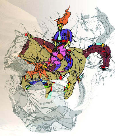 複雜的構圖與透視法(7版) 史前人類的岩洞壁畫(二) 施學兢 圖一:複雜的動物圖形中有一個騎士。(Cave of Les Trois Freres, France. 版權屬於:Jiri Mruzek) 【編按】很少人聽說過「馬許(La Marche)文明」,然而它卻蘊藏著一個令人震驚的考古發現。馬許位於巴黎南部約350公里處,風景優美的維埃納省(Vienne Region)。1937年,一群考古學家在當地發現了一個高度發展文明遺跡,其年代約在一萬五千多年前。馬許文明所展現出來的高度發達,並沒有使其得到應有的重視。相反地,由於從它被發現的第一天起,就與人們的觀念格格不入,所以沒有人重視它。究其原因,是它涉及到了史前文明。然而,在越來越多的事實面前,一些最頑固的科學家也開始注意到史前文明的存在。隨著考古發現不斷增加,人類對歷史的認識也許有朝一日會改觀。由於史前石板畫中,常有許多圖形重疊在一起,不易直接看出圖形繪製者要表達的意義,必須仔細地解讀。雖然圖形相當擁擠複雜,然而卻按照了一定的規律排列。加拿大的密魯塞客先生(Jiri Mruzek)認為這些壁畫包涵了X光透視法,立體透視法以及複雜的幾何構圖與規則。在法國庇里牛斯山區的三兄弟洞窟(Cave of Les Trois Freres)中,有一幅令人感到不可思議的石板畫(圖一)。畫中有許多的馬匹以及其他的動物,層層重疊在一起,有的還倒過來畫,非常難以分辨究竟畫了什麼? 圖二:穿著披肩的少女。(Cave of La Marche, France. 版權屬於:Jiri Mruzek)經過專家仔細地分析,發現在許許多多的動物之中,有一個騎士的畫像。他袖子捲起來,穿著一件背心、一條寬腰帶、及一雙長統靴,一把短劍插入位於左靴處的劍鞘,這個騎士左手伸入褲子左邊的口袋中。他的長髮看起來在風中飄揚,其實也恰好是另一隻動物的形象。舊石器時代晚期的原始人怎麼會畫出這麼複雜的圖案?他們怎麼會穿靴子呢?目前科學家認為法國新石器時代的克魯麥農人(Cromagnons)對於馬的了解高於同時期的其他種族,不過由騎士圖看來,顯然他們對於馬的了解不僅僅只是粗淺的認識,甚至達到本次人類文明中古時期的水準。另一張在拉馬什洞窟發現的少女圖(圖二)則更完整的表現當時人類的衣著與生活了。圖中少女打扮得像個獵人,背後的披肩飛揚,帶著皮帽,腿上穿著長筒皮靴,凝視著遠方的天際。她的坐姿好像騎在馬上。事實上,原圖畫的確有一匹馬,只是畫得相當模糊,不易辨識。