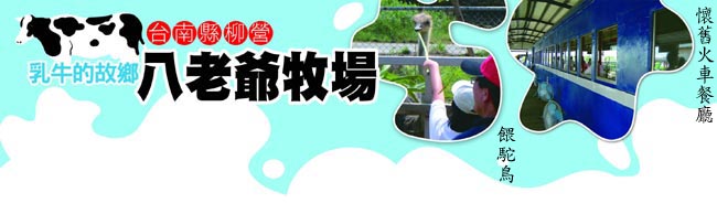 台南縣柳營─乳牛的故鄉─八老爺牧場(13版) 姜昱有 文‧攝影/姜昱有 你知道平常在商店買的香醇鮮乳,是來自哪裡的乳牛呢?在台南縣一個小鄉鎮——柳營,有著全國最大的牛奶產量,它可以真正說是乳牛的故鄉喔!說起柳營鄉,可能大部分的人都不太熟悉,而柳營鄉裡的八翁村(舊時叫八老爺村),之所以能成為全國最大的牛奶產地,可是有一段小小的歷史喔!柳營的酪農業發展小歷史在三十年前(民國六十三年),當時政府為加速農村經濟建設,縮短城鄉差距,於是由台南縣政府辦理農牧綜合重劃區,在柳營開闢了酪農專業區飼養乳牛場地,成立「平地乳牛農牧專業區」發展精緻農業。早期,八翁酪農區原有酪農41戶,民國六十三年四月下旬,由紐西蘭進口了246頭泌乳牛分配給酪農戶,每戶六頭。而今酪農戶已擴增為87戶,乳牛頭數14,378頭,占全國乳牛總數的六分之一。八翁酪農專業區是全國最大輔導經營的酪農專業區,年產乳量接近五萬公噸。近年來,為因應加入世界貿易組織(WTO)對國內農牧業所產生的重大衝擊,牧場酪農開始轉型,生產的同時,也結合觀光、休閒牧場的機能,吸引了更多的遊客。八老爺牧場八老爺牧場(又名營長牧場)就是位於八翁酪農專業區內,由八老爺乳鄉發展協進會,成立於民國九十三年四月,園內花木扶疏、小橋流水,景色怡人,是親子同遊的好地方。牧場內有乳牛資訊及DIY教室,提供乳牛相關資訊,可教導小朋友認識乳牛的生態以及關於牛奶的常識。現場並設有鴕鳥、小羊、小白兔與乳牛觀賞區,不論大小朋友都可以親自拿牛奶或牧草餵食小牛與其他小動物,還可跟著牧場主人一同瞭解鮮奶的生產過程,以及學會如何分辨市售牛奶的濃純度。除此之外,還有一條人造的小水溝,除了是給小朋友玩水消暑外,還不定時會放入泥鰍,給大朋友們回憶兒時捉泥鰍的滋味喔!喜愛乳製品的遊客,除了有機會飲用香醇鮮奶,牧場也精心自製鮮奶布丁、鮮奶土司等副產品,供遊客訂購。此外,牧場主人還在牧場裡栽種柳丁,這裡的柳丁是靠乳牛的糞便堆肥生長的,滋味鮮甜,綠皮外觀與一般市售相異,未來也將開放遊客採果,體驗農家生活。牧場的餐廳也非常特別,是由舊台鐵火車車廂改建而成,不但在其中用餐別有一番風味與情趣,餐廳更提供有乳香四溢、營養健康的鮮乳火鍋及各式各樣鮮乳作成的製品,味道香濃可口,令人垂涎三尺。五分車懷舊鐵道值得一提的是,牧場與台糖公司合作,發展由新營中興車站至八老爺車站的五分鐵道車觀光路線,去年年底開始通車了。這個台糖小鐵道全程4.6公里,行程約三十分鐘,非常適合全家大小來個鐵道懷舊之旅喔!這個小火車之所以被稱為五分車,是由於它的車軌只是平常火車車軌的一半而得名。鮮紅色的小火車頭,載著整列遊客,緩緩駛過鄉鎮路口與農田,開放式的車廂,讓每個人都可以與沿途的美景有最直接的接觸與體驗。對了,在路口平交道與路人或車輛交會時,別忘了向他們揮揮手打聲招呼,您將會感受到南部人率真的熱情喔!交通資訊 中山高麻豆交流道下,車沿176縣道,往麻豆方向約1公里到麻豆圓環左轉新生北路,往隆田連接台一線,接著往新營方向經過柳營段即可看到八翁酪農區的路標。