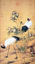 畫花陰雙鶴 清 郎世寧 軸 絹本設色 170.7 x 93.1公分