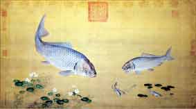 畫魚藻 清 郎世寧 軸 絹本設色 68.8 x 122.1公分