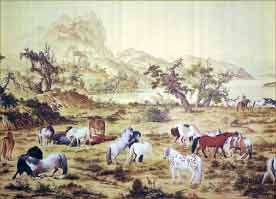 百駿圖 清 郎世寧 軸 絹本設色 68.8 x 122.1公分