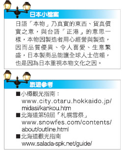 小樽運河沿岸的歷史景觀是來到這裡必訪之地,古運河岸倉庫群、古蹟商店林立,到了傍晚時分,石板街道和兩旁亮起的油燈使城市充滿了懷舊氣氛。如果正好遇到每年冬天由小樽市政府主辦的「戀戀小樽~雪.燈之路」活動,白雪燭光交織,可更感受小樽浪漫氣氛。2008年第10屆「戀戀小樽~雪.燈之路」活動將於2008年2月8日到17日展開。世界知名的北海道第59屆「札幌雪祭」也在2月5日到2月11日,這段期間正是明年中國人農曆新年假期,為自己和家人安排一個不一樣的新年假期,到海外過節,北海道小樽,感動人心,適合全家出遊。◇