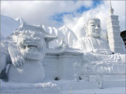 此為第57屆「札幌雪祭」中「快樂台灣」的主題,可見大佛與101大樓。(圖/Hokkaido Tourist Association)