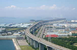 瀨戶內海地區,四周群山環繞,碧透清澈的海水,倒映著低矮起伏的山巒,海內遍布著的大小島嶼,與周圍的群山交相輝映。大橋的建成,不僅方便了兩岸交通,也為瀨戶水域增添了一處人造景觀。◇