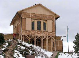 1869~1872年路德維希二世首先在1866公尺高的阿爾卑斯山上興建一座木制的狩獵別墅──莎亨屋,這是一座外觀有著阿爾卑斯山屋典型的樸素,內部卻充滿土耳其風的小型建築。由於位在叢山峻嶺之中,對外只開闢一條小徑,供國王乘坐馬車或雪橇進出。
