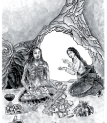 圖:在山洞苦修的密勒日巴與妹妹琵達 |
