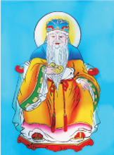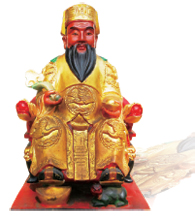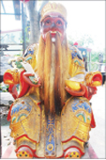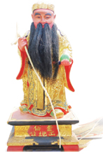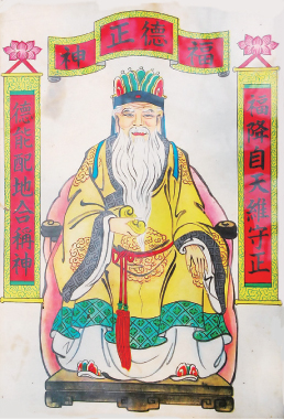 | 圖:身長二尺的木製土地 | 圖:紙繪土地公像 |