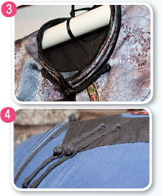 圖4:領子與前襟一般所使用的布釦是用黑布縫成線後再打成中國結,布釦前方凸起象徵做人要「出頭」。