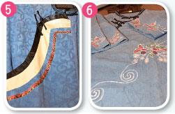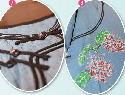 圖5:衣服的開口由頸項下往右肩直至腋下開到底,成一大斜襟,前襟不同的花色也代表不同的年齡與身分。