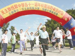 ▲台北縣恆毅中學51週年校慶在大漢溪河濱公園舉辦越野賽跑。