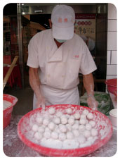 師傅在店前滾元宵。(記者孫幗英/攝影)