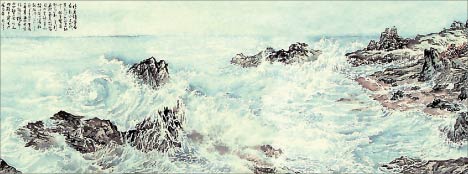 「海濱枯坐、默察心記、洞識變化之由」這是傅狷夫觀海真言,他不止一次在教學上提醒學生,畫水,光是在紙上磨蹭是不夠的,訣竅在多觀察、多體會水的流動,別以為海浪到處流竄雜亂無章,事實上浪濤是一波接一波而有所重複的,若仔細觀察必有所得。